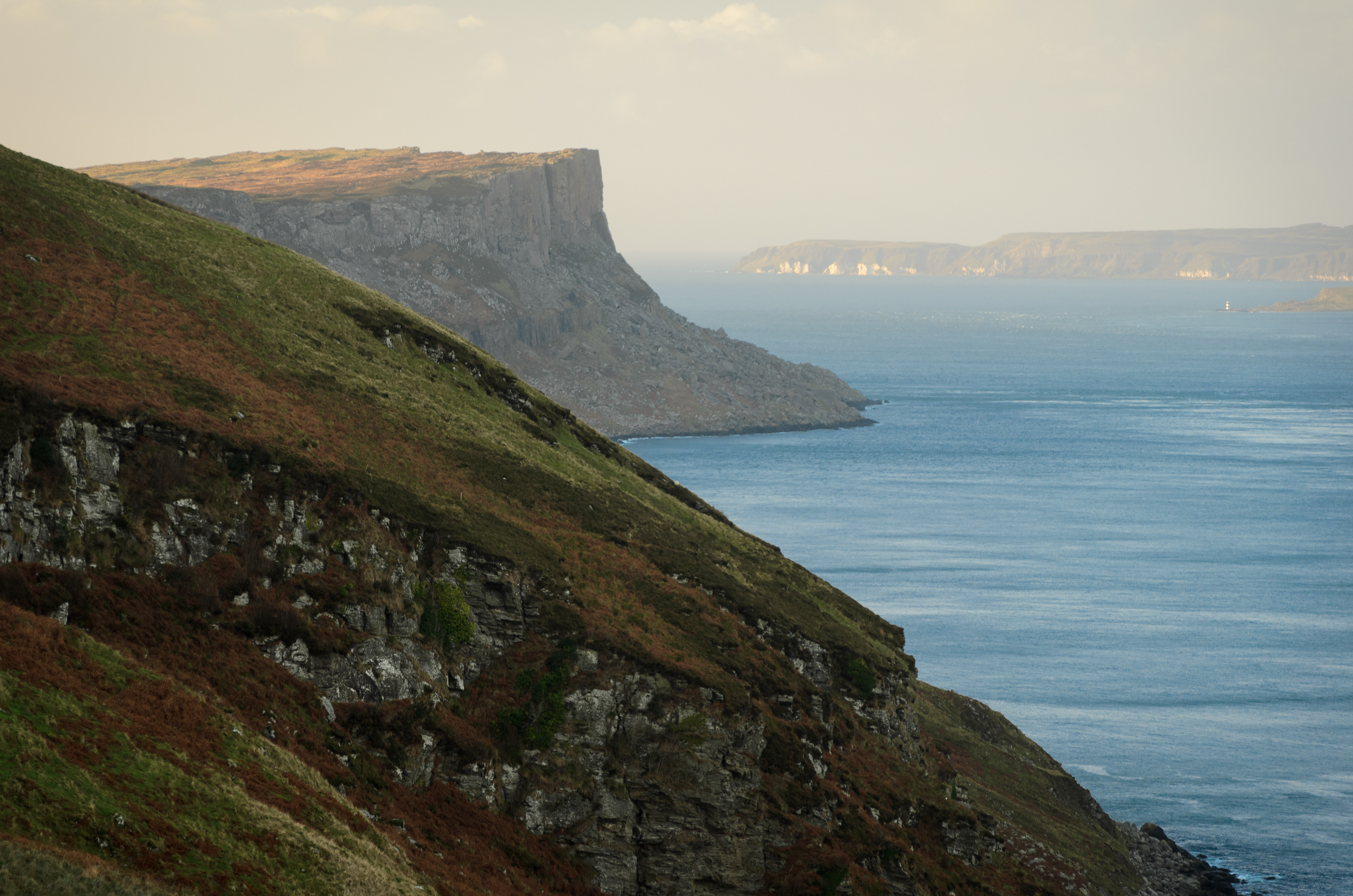 Standing at 379m (1,243 ft), it is a classic Antrim vista of rugged, heather-covered hills rolling towards the dramatic North Channel coastline.