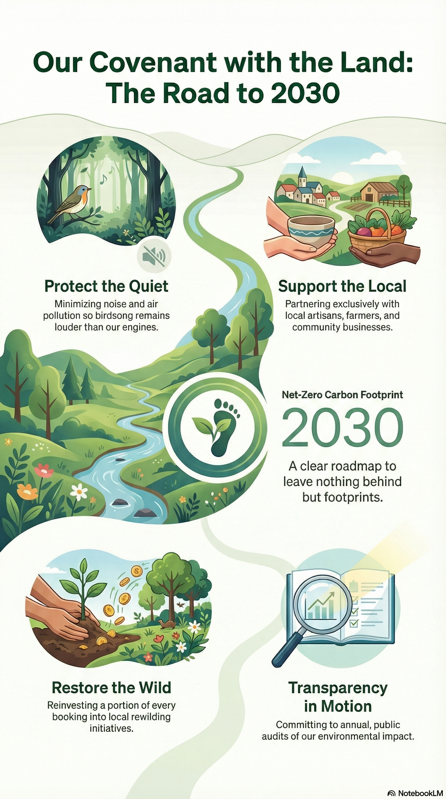 With that belonging comes a profound responsibility. The world is changing, and the wild places we all love are fragile. We believe that world-class travel should not come at the cost of the earth, and that "luxury" should be defined by the purity of the air and the preservation of the silence.
