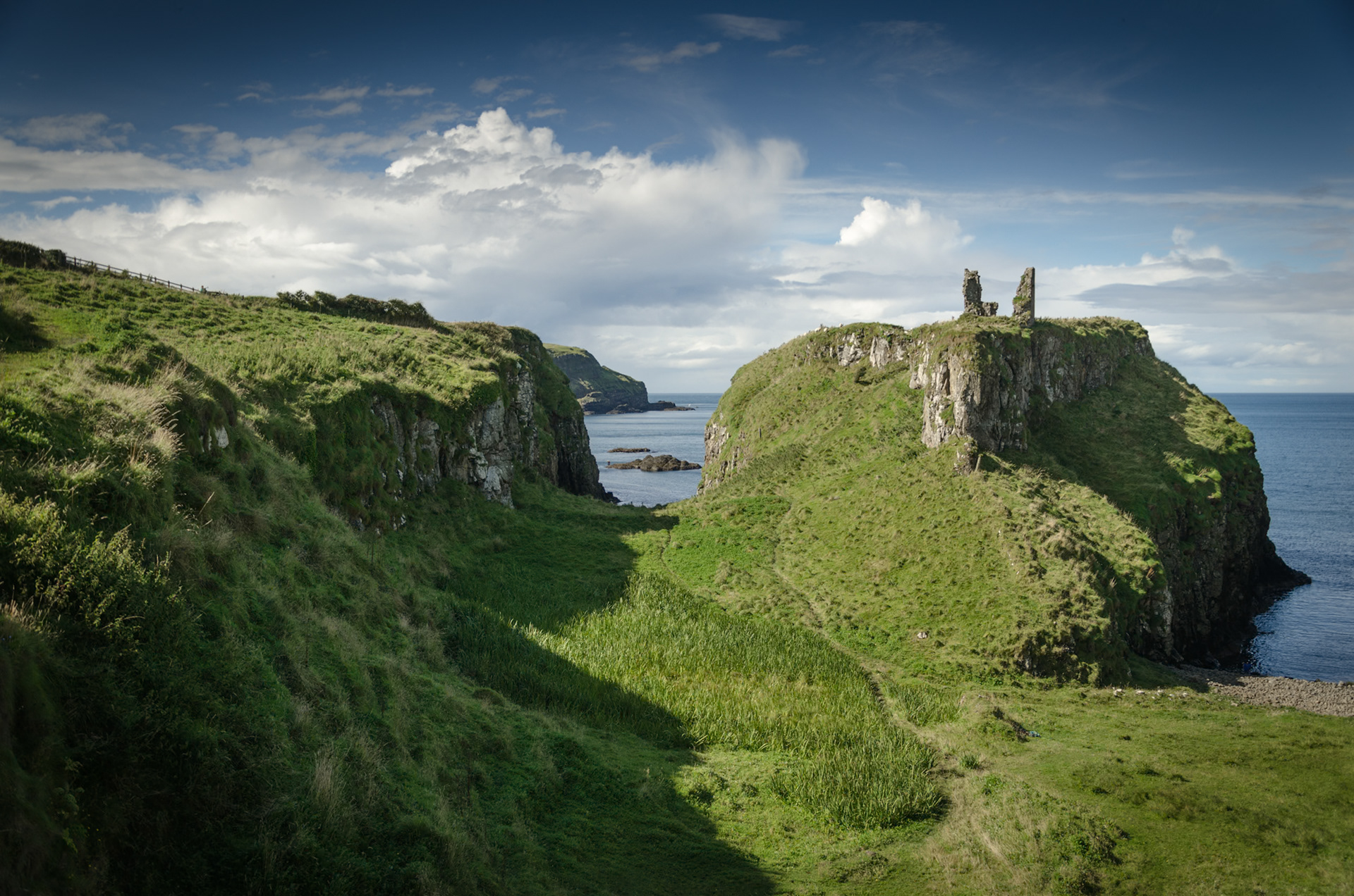 Dramatic descents are the norm on our walks in County Antrim..