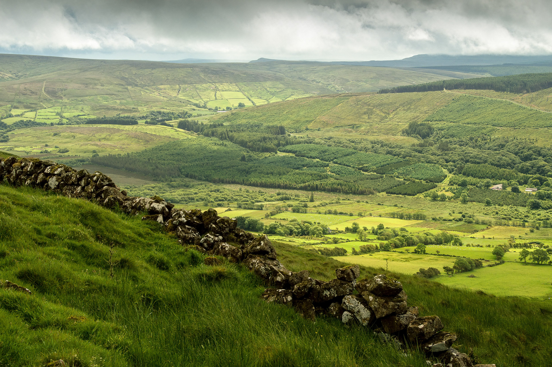 Like the Antrim Hills, this range is a rugged expanse of nature’s beauty at its finest. Here the main peaks are laid out in front of you with its many ridges in between. Simply stunning..